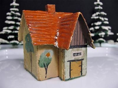 Vintage CARDBOARD Putz HOUSE for Christmas Village or Train Set * Germany