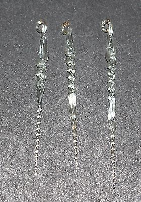 Title (ebay affiliate link): First set of Three Early 1900s Clear Glass, Twisted Icicles. Christmas Ornaments