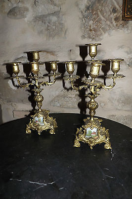 Pair Antique French Bronze and Porcelain Candelabre" Candlesticks,19 th