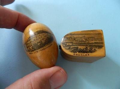 Treen 2 Mauchline Ware Wood Thimble Cases Sewing Box Kits Sterling Silver