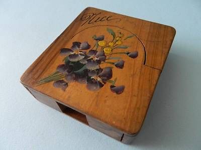 Italian Olive Wood fold away Pocket Watch Holder Night Stand floral Painted 1900