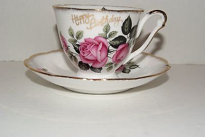 Tea cup Queen Anne Bone china england ( Happy Birthday ) Gold trim and Letterin