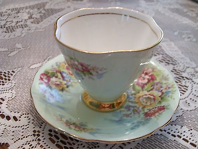 Pale green floral Clarence Tea Cup and Saucer, made in England