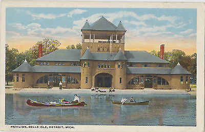 Title (ebay affiliate link): PAVILION BELLE ISLE DETROIT MICHIGAN~CANOES IN WATER~VINTAGE CURTEICH POSTCARD