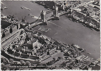 TOWER AND TOWER BRIDGE AERIAL VIEW LONDON~AERO PICTORIAL LTD~REAL PHOTO POSTCARD