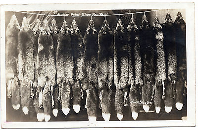 ANCHOR POINT SILVER FOX FARM,FOX PELTS ON A LINE,REAL PHOTO POSTCARD EKC 1945-50