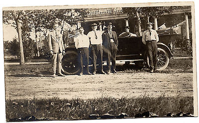 VINTAGE CAR DECORATED WITH AMERICAN FLAGS, REAL PHOTO POSTCARD CIRCA 1915