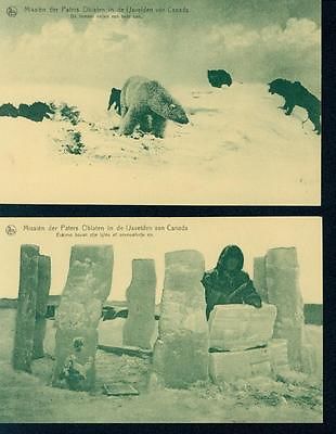 Ethnic : Icebear with huskies, making of an Iglo by Inuit ca 1930 2pcs