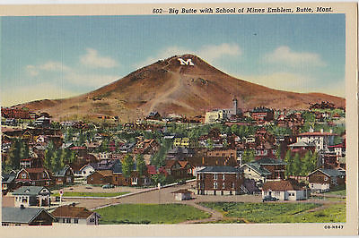 Title (ebay affiliate link): BIG BUTTE WITH SCHOOL OF MINES EMBLEM~VINTAGE BUTTE MONTANA VIEW CARD