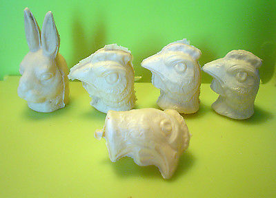 Vintage Plastic Animal Heads Chickens and Rabbit
