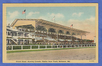 Title (ebay affiliate link): Pimlico Race Track Md. Grandstand Showing Crowds Linen Finish Vintage Postcard