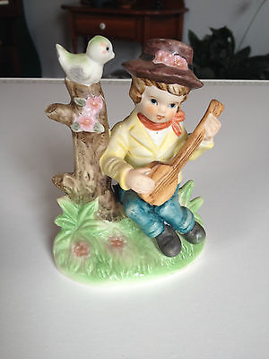 Vintage Capodimonte Style Figurine - Boy with Bird Playing Guitar Crown N Logo