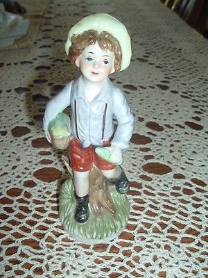 VINTAGE CAPODIMONTE BOY FIGURINE 6-1/2" TALL MARKED W/BLUE CROWN OVER N
