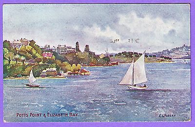 AUSTRALIA POTTS POINT & ELIZABETH BAY SYDNEY KL FARRAN ARTIST SIGNED POSTCARD