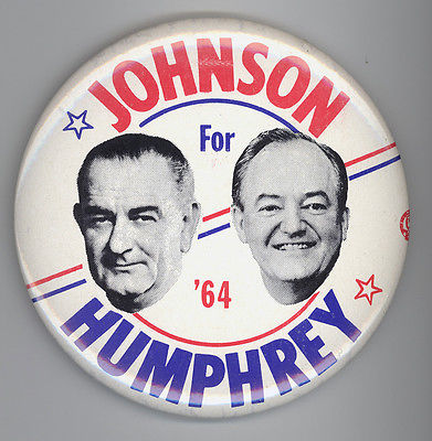 Title (ebay affiliate link): 1964 LBJ HHH LYNDON JOHNSON Hubert Humphrey JUGATE Pin BUTTON Pinback BADGE 3.5"