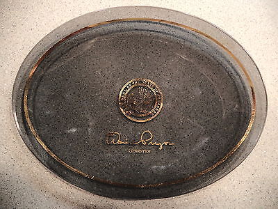 c1975-79 DAVID PRYOR GOVERNOR ARKANSAS CANDY DISH, GOLD LEAF/SMOKE GLASS