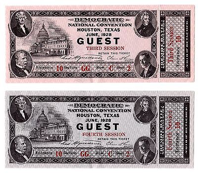 TWO UNUSED TICKETS TO THE 1928 DEMOCRATIC NATIONAL CONVENTION - AL SMITH