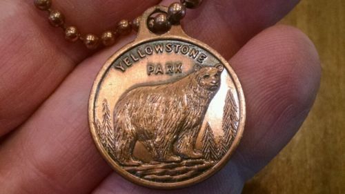 Title (ebay affiliate link): VINTAGE/ ANTIQUE METAL YELLOWSTONE NATIONAL PARK BEAR KEY CHAIN COIN