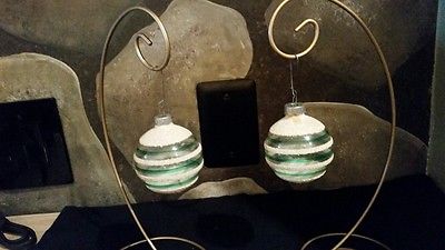 2 Vintage Shiny Brite Mercury Glass ornaments - Unsilvered Snow Cap Green Stripe