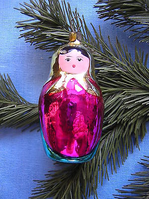 OLD RUSSIAN GLASS CHRISTMAS ORNAMENT NESTING DOLL MATRYOSHKA