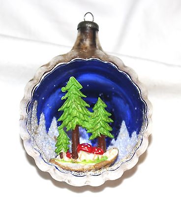 Title (ebay affiliate link): Mushroom Forest. Plastic Insert. Bue Sky. 1950s Italian Glass Ornament.