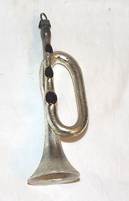 Silver Trumpet, Ruby Red buttons. 1920s Glass Christmas Ornament. Germany.