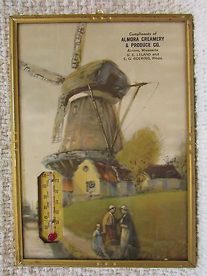 1940 Almora MN Creamery Leland Roering Dutch Windmill Old Thermometer FREE S/H