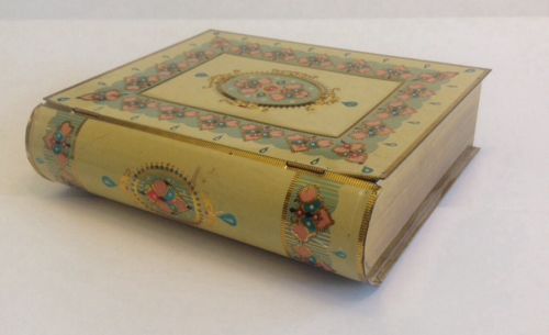Title (ebay affiliate link): Vintage Metal Candy Tea Tin Library Book Box West Germany
