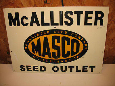 Original Metal Seed Sign McALLISTER MASCO SEED OUTLET Mt Pleasant Ia. farm feed