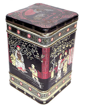 VINTAGE TIN TEA BOX CONTAINER CHINESE ILLUSTRATED MADE IN ENGLAND 1969