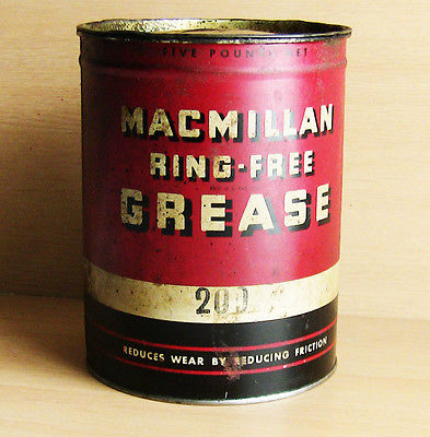 Title (ebay affiliate link): RARE! 1938 MACMILLAN Ring Free Grease 5lb tin Auto Oil Advertising Collectible
