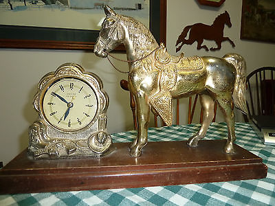 Title (ebay affiliate link): Antique Horse Mantle Clock, United Metal Works, NY. Gold, USA