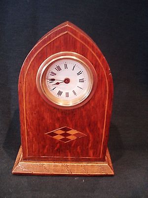 ANTIQUE VINTAGE SEIKOSHA JAPANESE WOODEN OAK MARQUETRY INLAY MANTLE CLOCK