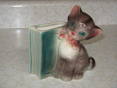 VINTAGE ROYAL COPLEY KITTEN AND BOOK PLANTER