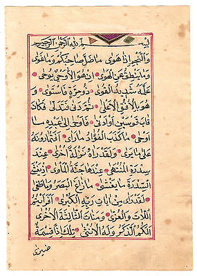 VERY BEAUTIFUL QUR'AN LEAF 1262 AH (1845 AD) q