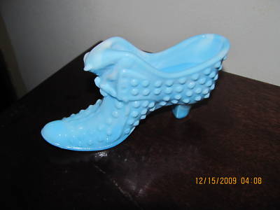 Light Blue Milk Glass Cat Head Slipper Shoe
