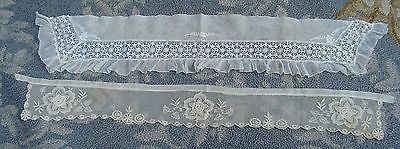 2 ANTIQUE NET LACE NEEDLE MALTESE EMBROIDERED TRIM PIECES ROSE DOLL POINT TULLE