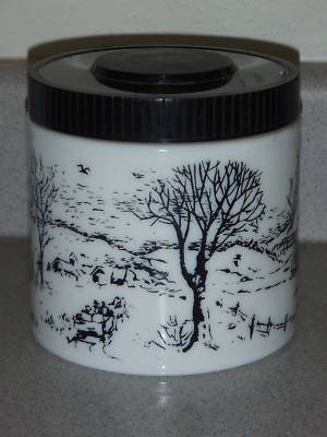 MILK GLASS TOBACCO HUMIDOR COUNTRY SCENE