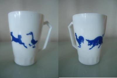 HAZEL ATLAS HA Child mug cup milk glass farm animals