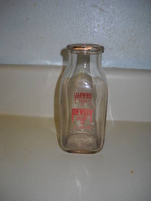 VTG 1/2 PINT MILK BOTTLE/W/PAPER LID "PEVELY DAIRY MO.