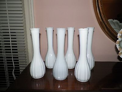 Title (ebay affiliate link): Lot of 6 Matching Vintage Fluted Milk Glass Bud Vases Wedding Florist