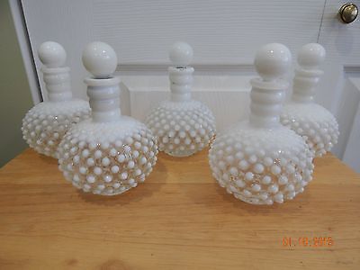 Title (ebay affiliate link): (5) Vintage Hobnail White/Clear Milk Glass Perfume Bottles with Stoppers.