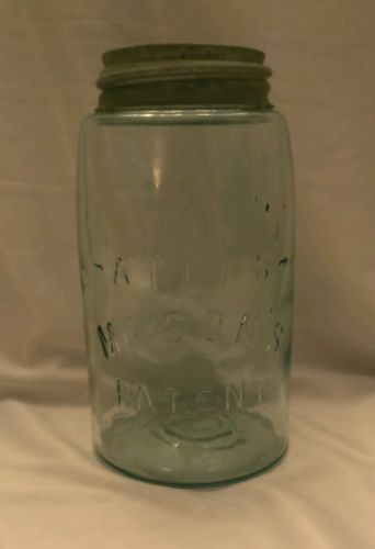 Title (ebay affiliate link): ATLAS MASON'S PATENT Fruit Jar Quart GREEN w/ATLAS zinc milk glass lid