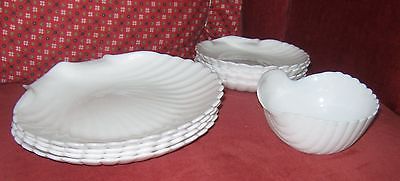 9 Vintage Milk Glass Scallop or Shell Dishes ~ 5.5" & 8" plates. 1 4.5" bowl.