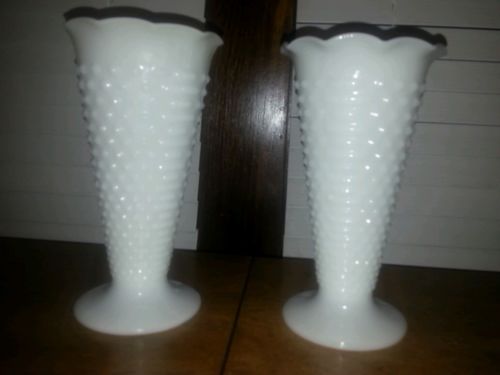 Title (ebay affiliate link): Vintage 60's Anchor Hocking Hobnail & Bars Tall Milk Glass Trumpet Vase 9.5"