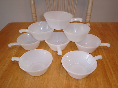 (8) Vintage Fire-King Milk Glass Handled Soup Cereal Chili Bowls Anchor Hocking