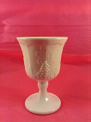 Title (ebay affiliate link): VINTAGE WHITE MILK GLASS HARVEST GRAPE INDIANA FOOTED GOBLET STEMMED BEVERAGE