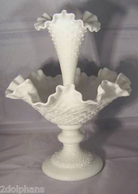 ~FENTON~DIAMOND LACE~MILK GLASS~ONE HORN~ EPERGNE~SWEET