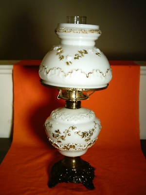 Vintage MILK GLASS OIL LAMP