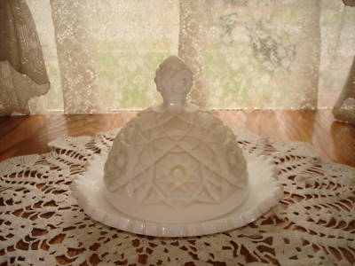 Beautiful Vintage Milk Glass Round Covered Butter Dish